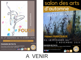Visites virtuelles Pour tout ceux et celles qui n’ont pas pu visiter nos expositions, notre ami Bernard Besson met tout son talent à leur service pour proposer une visite virtuelle de chacune d’entres elle depuis plus de 10 ans. Actuellement à la Maison de Pays Fouch jusqu'au 13 octobre Toutes les expositions de 2025 A venir C. Martinez - R. Saurel Artistes d'aujourd'hui Chloé Martinez et Roland Saurel Mornant - Pays d'Artistes aujourd'hui Salon Photo - Chapelle Salon Photo - Maison de Pays Mornant Pays d'Artistes Salon Photo - B. Laurent à la Chapelle Salon Photo Maison de Pays Mornant Pays d'Artistes Retrouvez toutes les visites virtuelles en cliqant sur le bouton -> Toutes les visites virtuelles